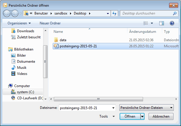 Zurück Outlook 2007 E-Mails aus PST Archiv importieren 6